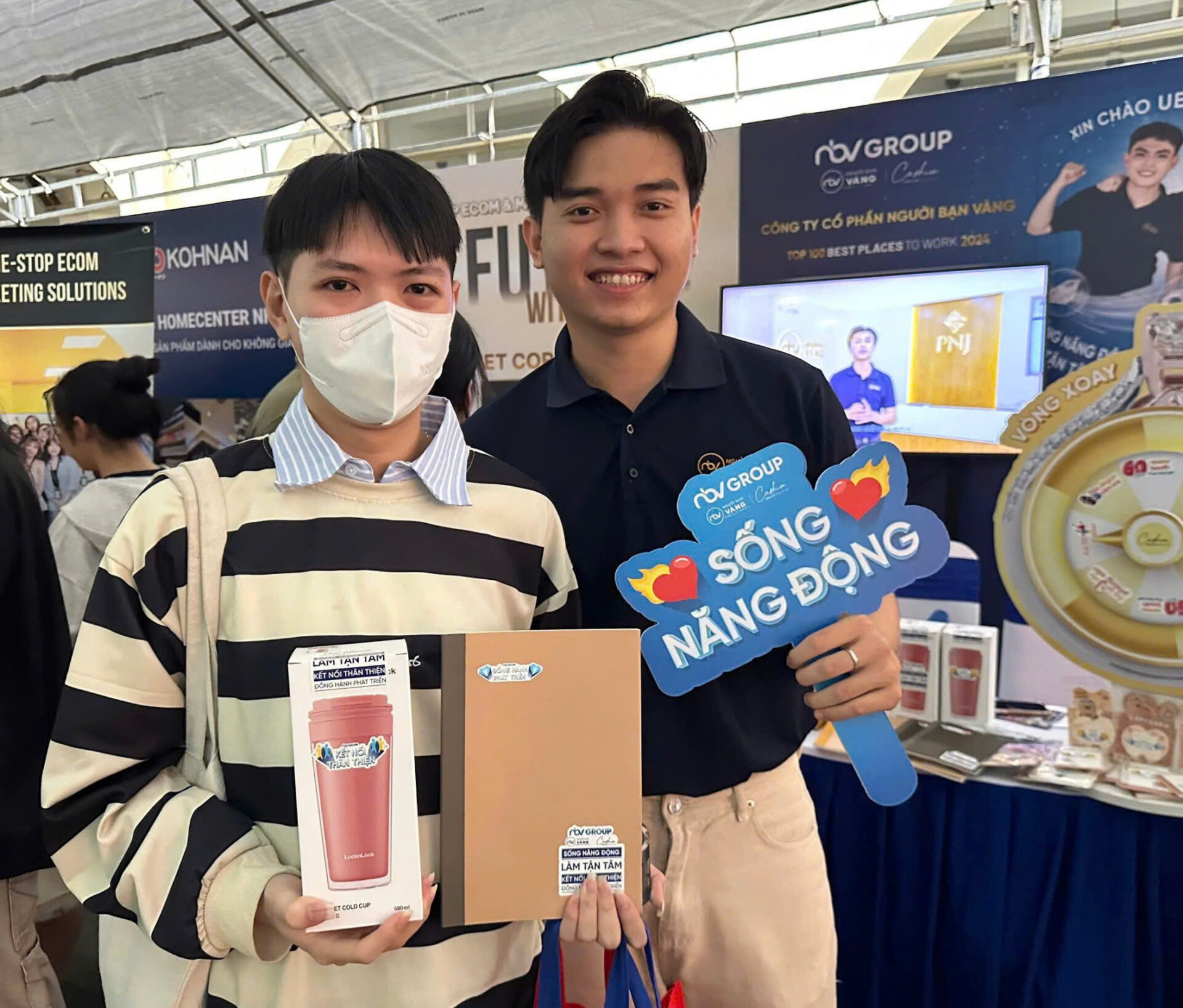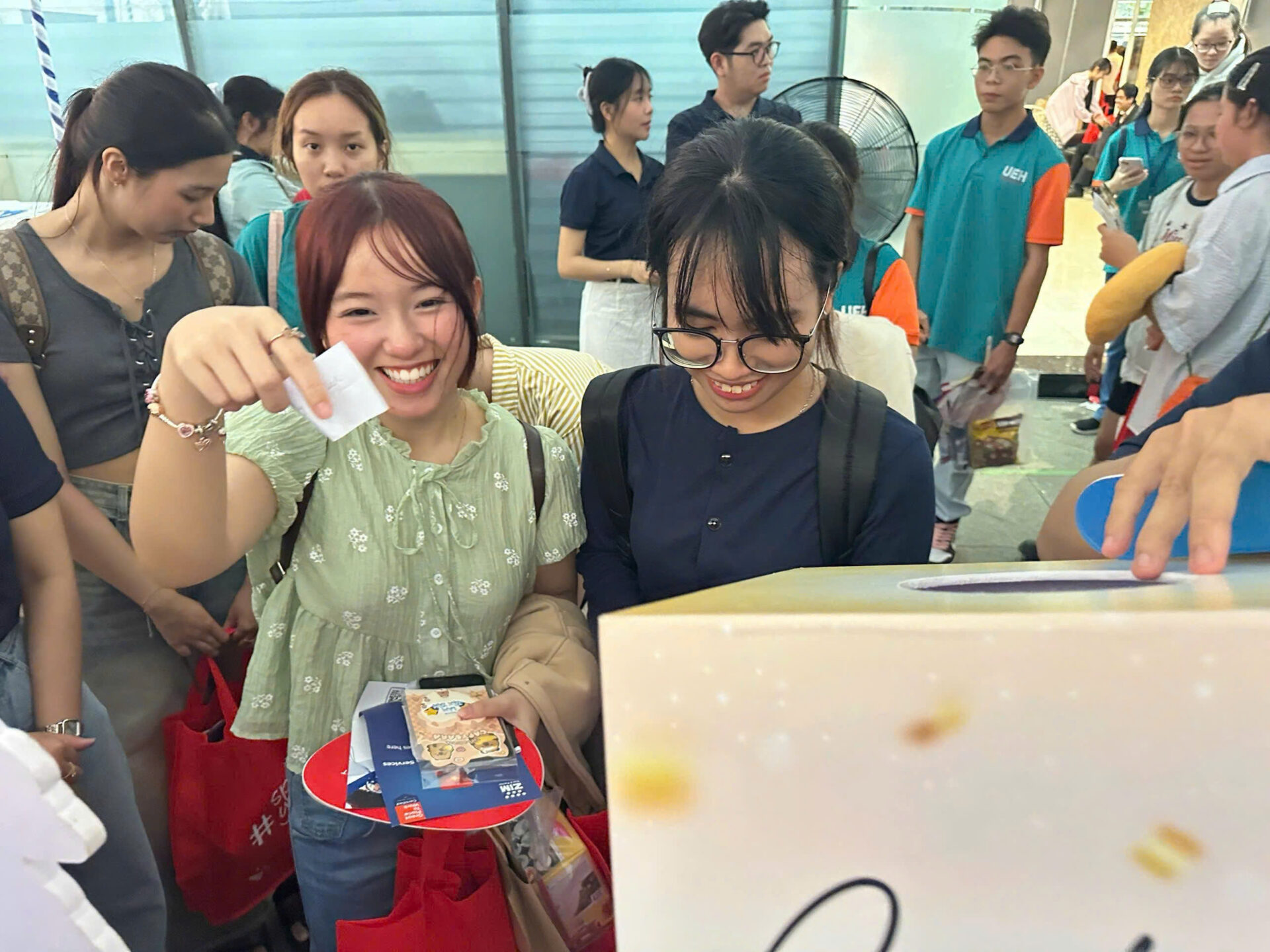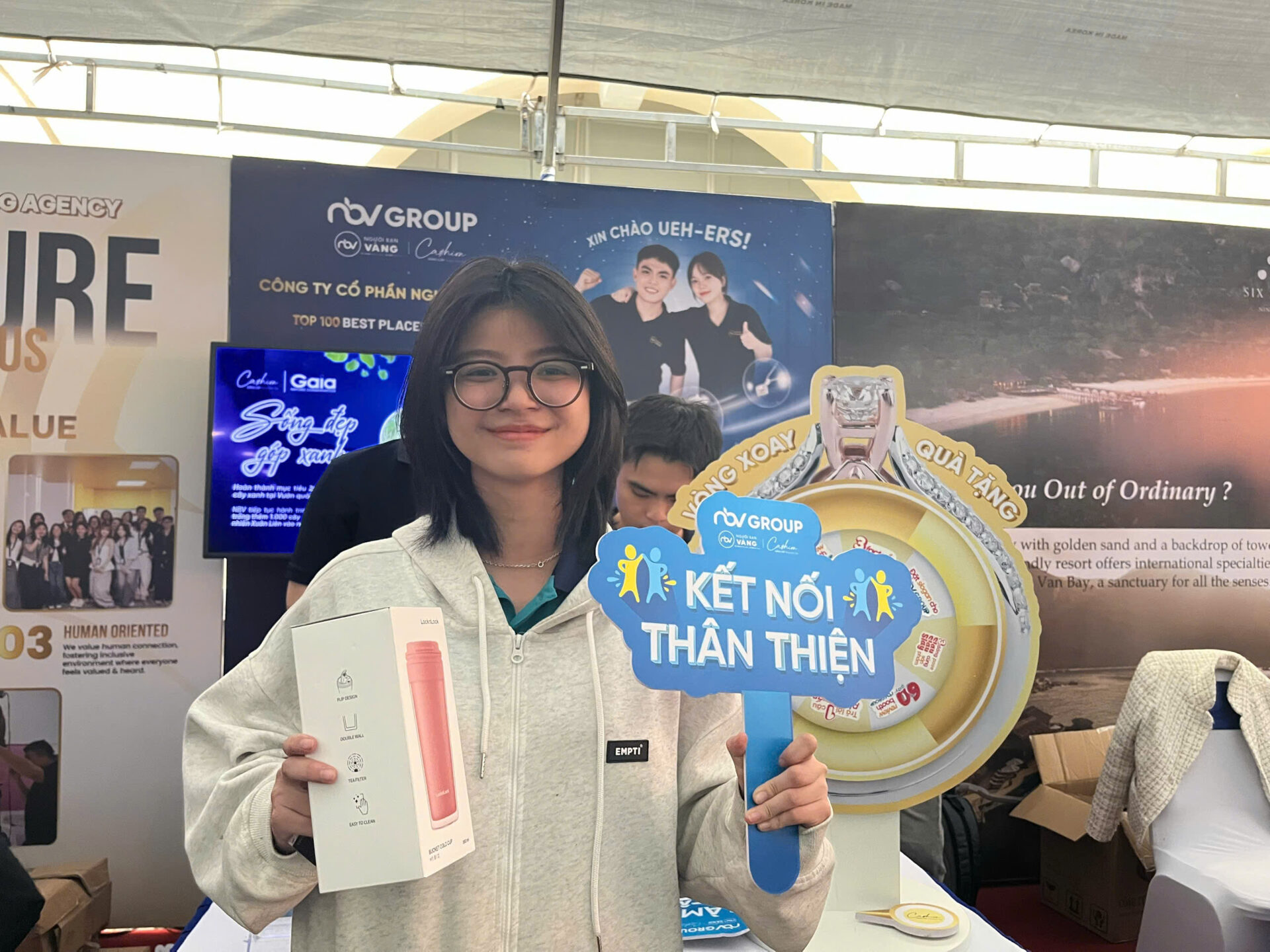 Không chỉ có những câu chuyện nghề nghiệp, gian hàng NBV còn là điểm đến đầy niềm vui với vòng quay may mắn và hàng trăm phần quà nhỏ xinh. Đặc biệt, Charm vàng hồng đính kim cương của Cashion đã tìm được chủ nhân may mắn – bạn Nguyễn Thị Anh Thi (UEH), khép lại một ngày hội trọn vẹn và nhiều cảm xúc.